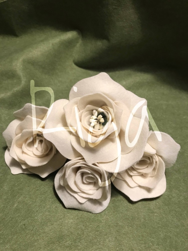 Rose, boccioli e petali di rosa, realizzati in morbidissimo pannolenci, modellabili, si prestano ai più svariati utilizzi: dall’ingresso alla sala da bagno con un tocco shabby, per le vostre creazioni e composizioni con un tocco glamour, per impreziosire un regalo o la vostra tavola con un tocco personale. Disponibili in bianco, avorio, rosso, bordeaux, giallo rosa, e in qualsiasi altro colore vi passi per la testa (glitter incluso)!